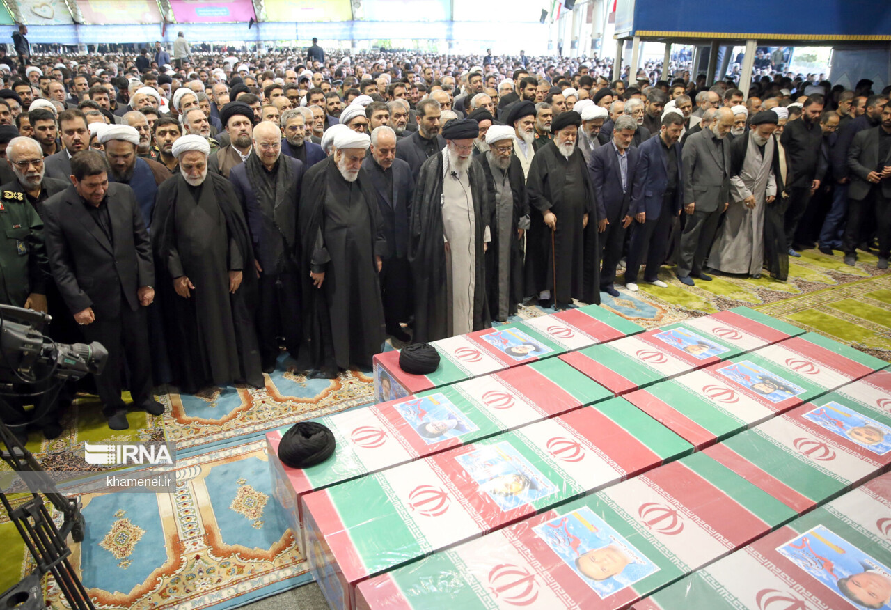 رهبر انقلاب در قرائت نماز میت ، دعای «اللهم إنا لا نعلم منهم إلا خیراً» به معنای «ما به جز خوبی از او نمیدانیم» را برای ابراهیم رییسی و همراهانش، سه بار تکرار کرد.