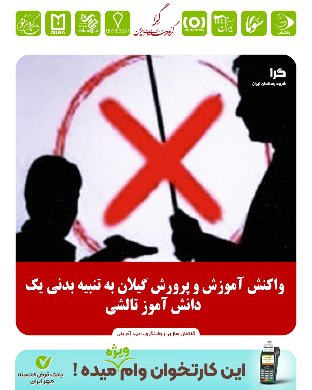 پیرو انتشار گزارشی مبنی بر تنبیه یکی از دانشآموزان در شهرستان تالش، به اطلاع می رساند که این حادثه در یکی از دبیرستان های تالش توسط یکی از دبیران رخ داده است. که بررسی های لازم توسط مراجع ذی صلاح در حال انجام است و اقدامات قانونی لازم برای رسیدگی به این موضوع در دستور کار قرار دارد.