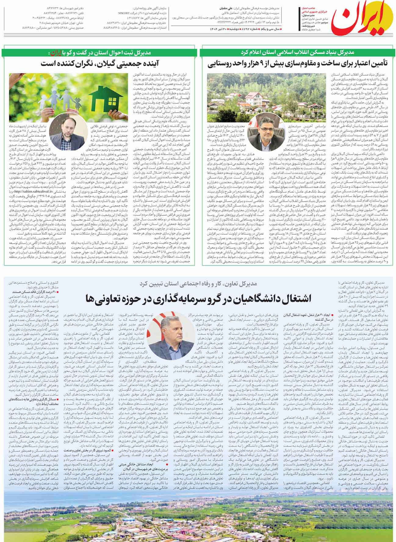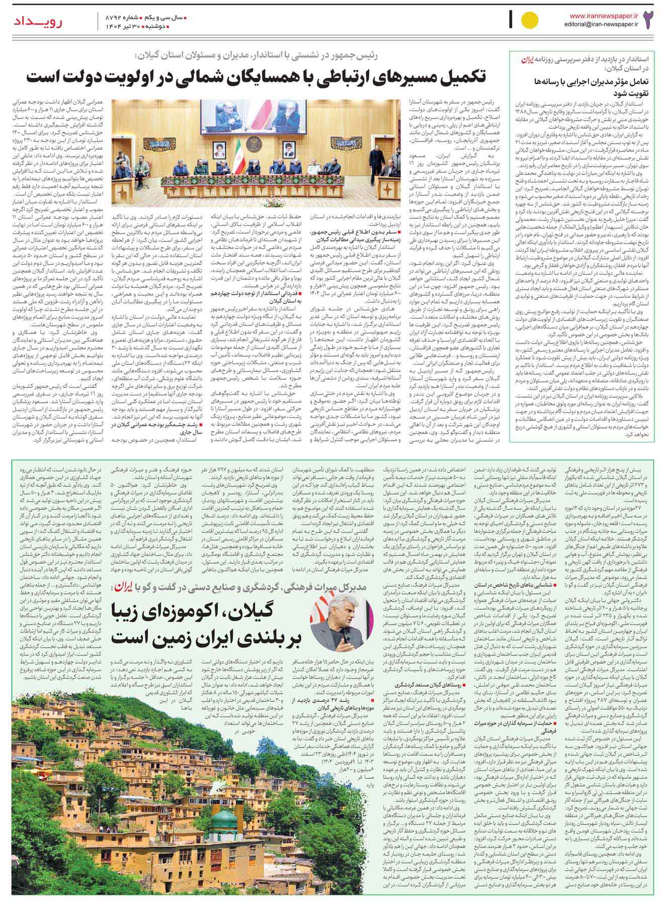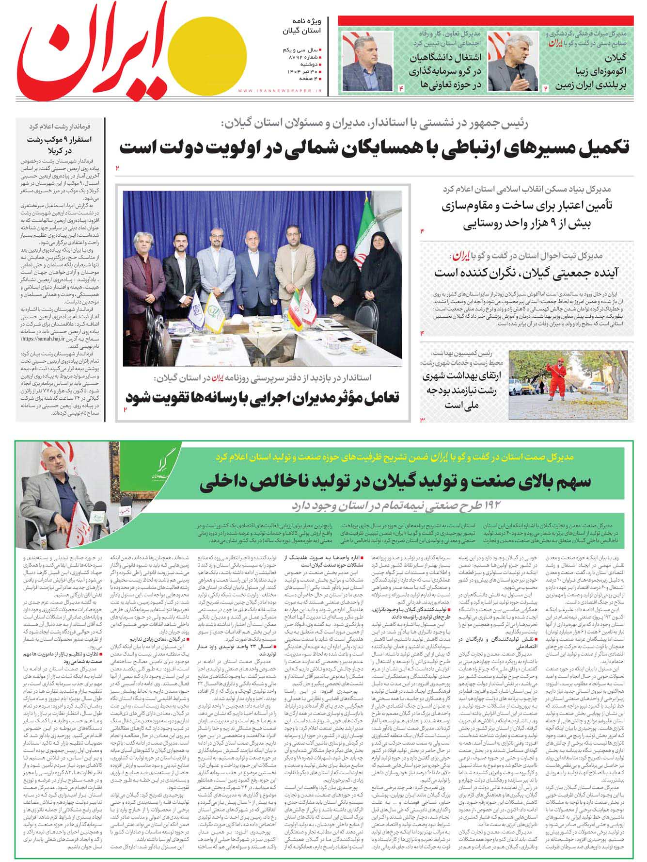 ویژه نامه ۳۰ تیر روزنامه ایران برای «استان گیلان»