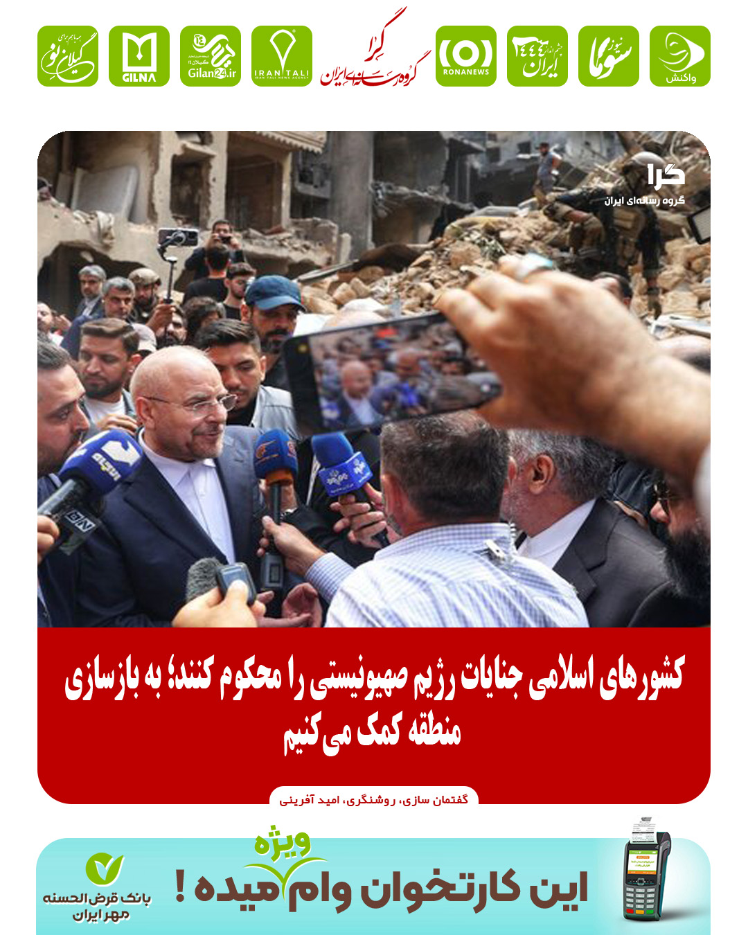 کشورهای اسلامی جنایات رژیم صهیونیستی را محکوم کنند؛ به بازسازی منطقه کمک می‌کنیم