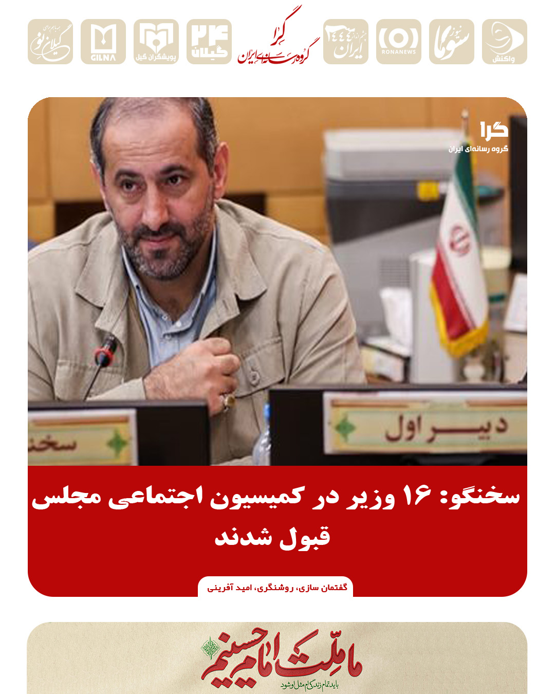 سخنگوی کمیسیون اجتماعی مجلس در پایان و در جمعبندی جلسات ارزیابی وزرای پیشنهادی گفت: طی سه روز گذشته و در جریان تشکیل جلسات ارزیابی وزرای پیشنهادی دولت چهاردهم در کمیسیونهای تخصصی مجلس، کمیسیون اجتماعی هم مانند: سایر کمیسیونها در خدمت ۱۹ وزیر پیشنهادی بود و تقریباً همه وزرا، جز وزرای پیشنهادی نفت، امور اقتصادی و دارایی و بهداشت و درمان از نظر اکثریت اعضای کمیسیون اجتماعی مورد قبول واقع شدند./